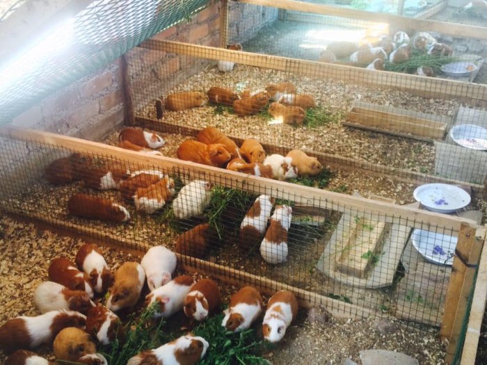 Tj. oproti klasicky velkým morčatům jsou větší, lze je spolu normálně chovat. Samozřejmě se dají i křížit a tak velká část cuyů bez plvodu je prostě malá. ☹️ Jinak já měla 4 cuy samice se 2 klasicky velkými samičkami a kápo byla ta klasická samička s váhou 0,8 kg. 😀Na fotu první srovnávačka s klasicky velkou tříbarevnou samičkou.