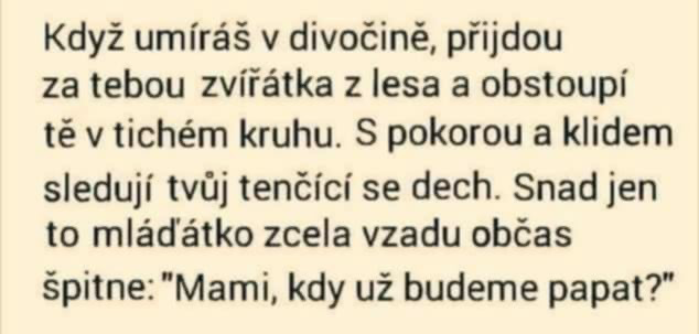 Mě naskočí mód “beru krumpáč, lopatu a vyrážím do lesa kopat jámu. Co, kdo? Žádné ženy ani křižovatka vlčáka tady nikdy nebyly”.