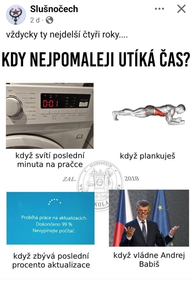 Je čím dál těžší postovat jen obyčejný laskavý humor - jestli to takhle půjde dál, realita politického života v ČR bude největší černá satira sama o sobě - už dnes se to skoro nedá přebít😄