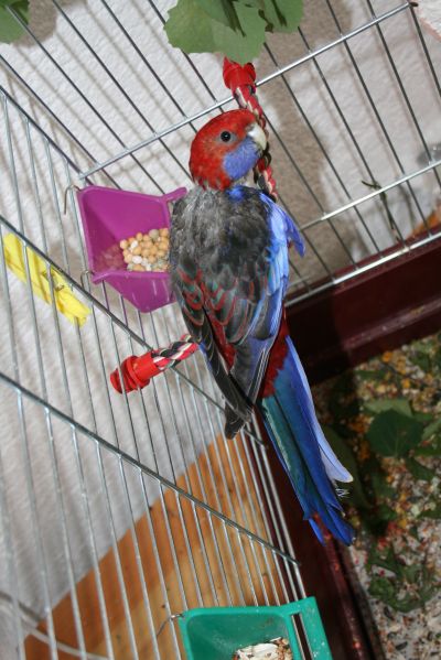 máme roselu penant, kterou jsem tak nějak zdědili. Vím, že je to špatný papoušek na doma a že by mě mít voliéru a tak... Ale s tím už nic nenadělám...