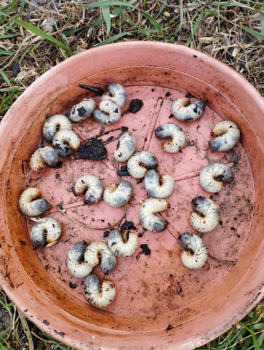 To si nemyslím - larvy tu nacházím každý rok a o chrousta nezakopnu . . . Byly mimo jiné v pytli s hlínou, který jsem venku nechala loni na jaře a chrousta jsem už spoustu let neviděla.