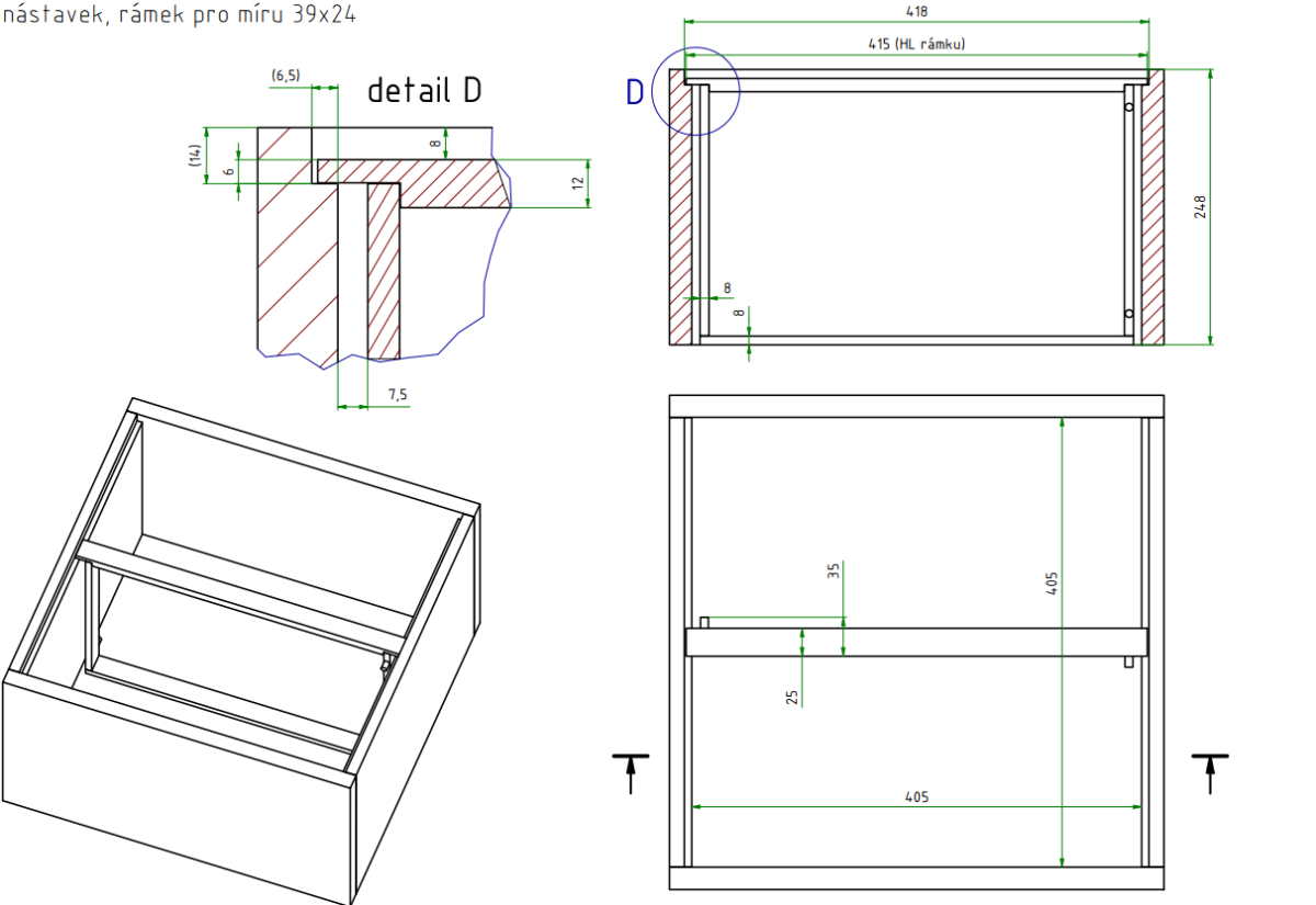 Nyní je uvedeno rámek přesunout k přednímu krycímu a přidat SR - dojde k rozšíření