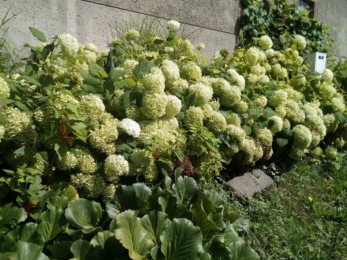 Hortenzii mám venku už dost let - ani nevím kolik. Je v trochu chráněném rohu. Na zimu jí nasypu kýblík hrabanky opadlé z tůjí. Chce kyselou půdu a dost vody. Také mám jednu v květináči, dávala jsem ji do chodby, letos zůstala venku jen zakrytá - omrzla, ale obrazila, ale kvete jen málo - fotka je starší. Ve vsi mají obrovské bílé koule v předzahrádce. Myslím, že s nimi žádná kouzla nedělají a jsou nádherné.