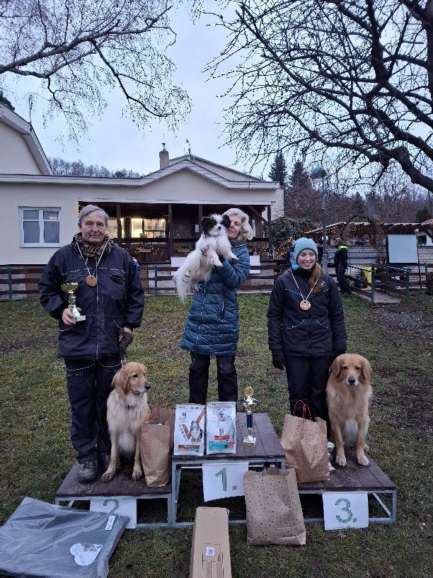 Mě vždycky ohromně pobaví fotka ze stupňů vítězů ! A jak musíte vzít psíka na ruku, aby byl za pohárem vidět 🙂) Tak přidám velkou gratulaci.