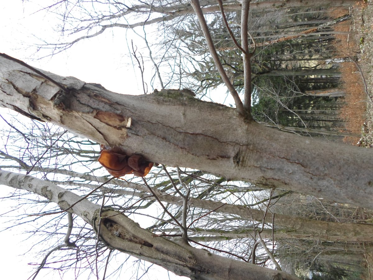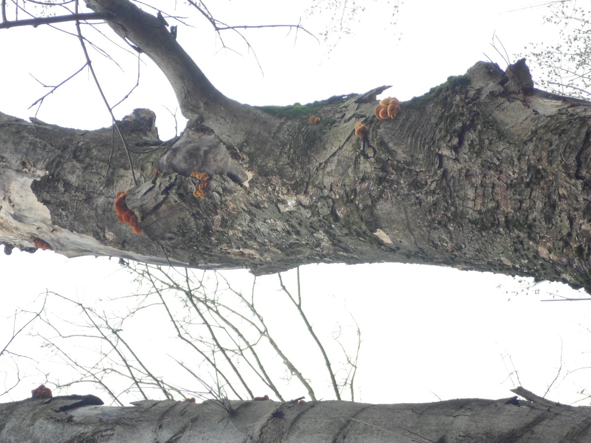 Ještě taky oranžové houbičky - nakonec jsem je identifikovala jako penízovku, ale ty byly na velikém pahýlu ( asi javoru ) snad 3 m vysoko ☹️
