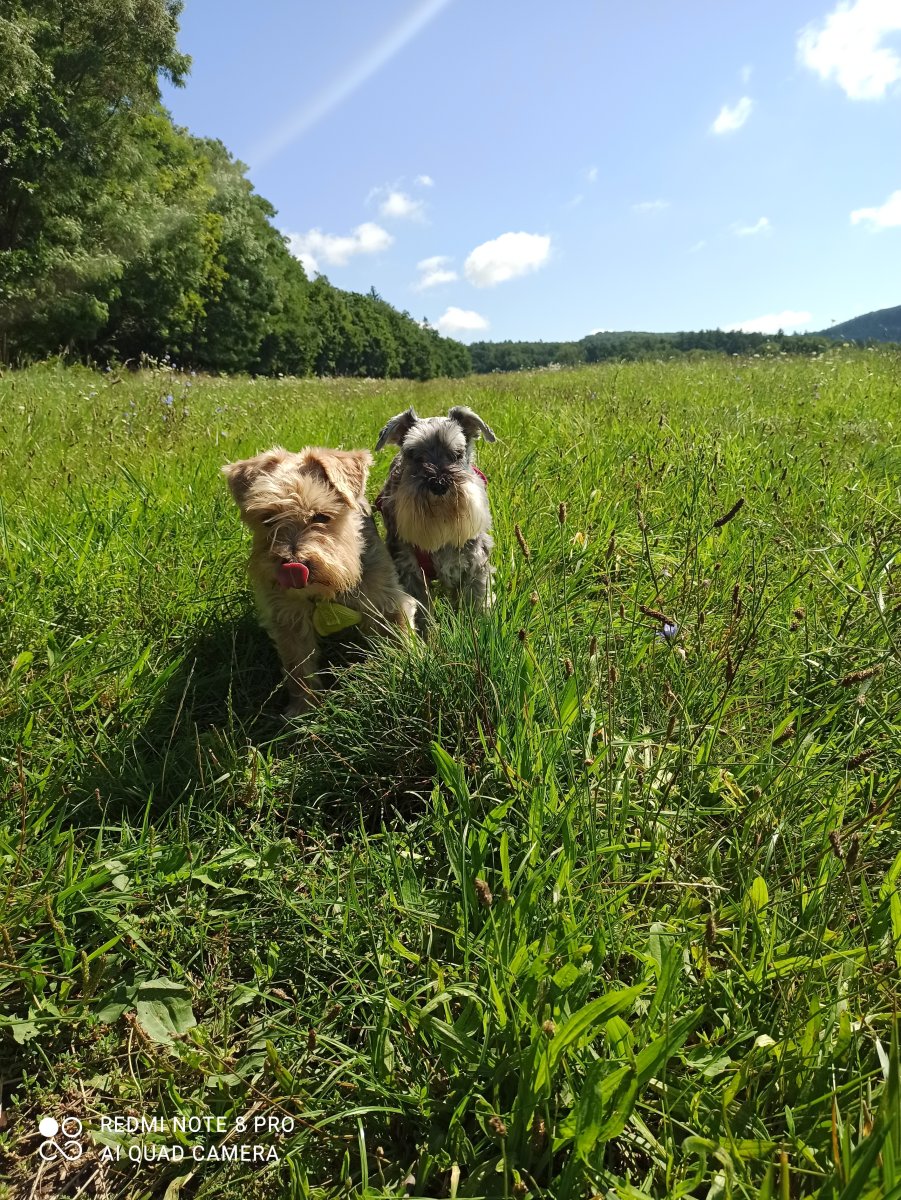 pejsci rodičů dostaly pamlsky na hledání do trávy a šla jsem pro Žeryka…,