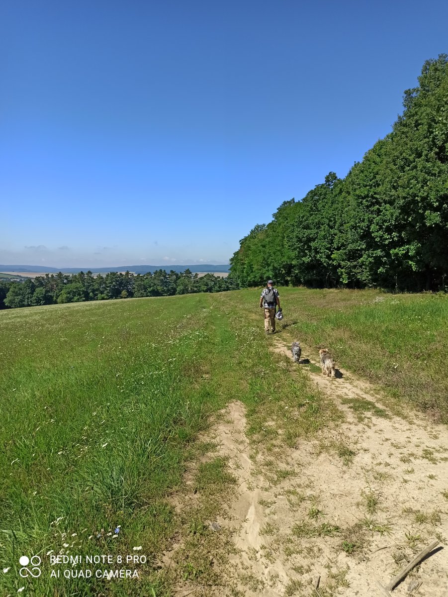 tak lezu ze 3 psama kousek k lípě,Dafi se táhne,protože kopec za barákem,Max táhne mě a furt k něčemučmuchá,Dafča se táhn za mnou,Betty táhne do strany…..