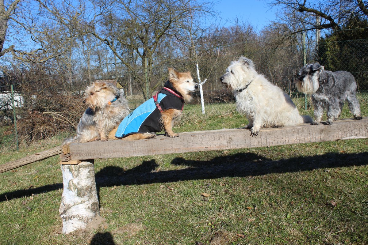 Žeryk hledj-ztratil,kroky,otočky,hraní s míčkem,,mezitím běhají,venčí se,a pak ze všema 3 lehni-ka mě-lehni ke mě… Žeryk v mezičase furt válí sudy…..😀