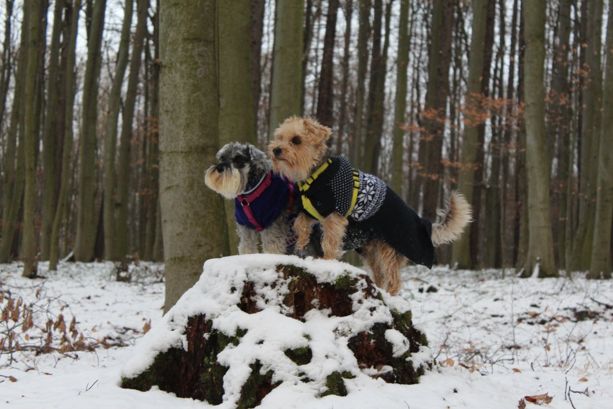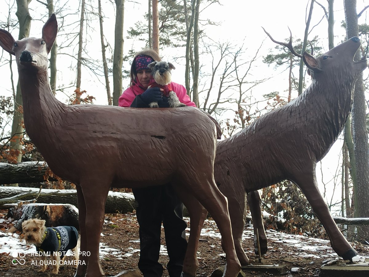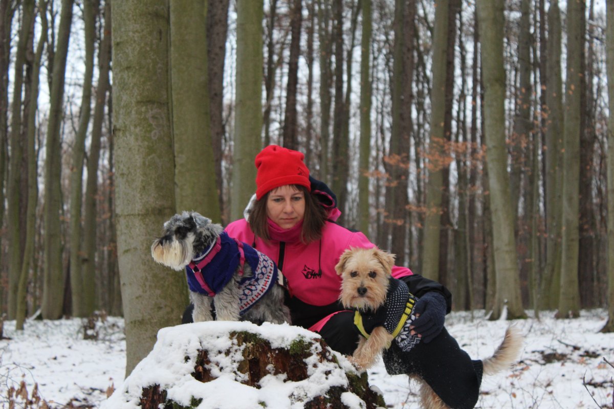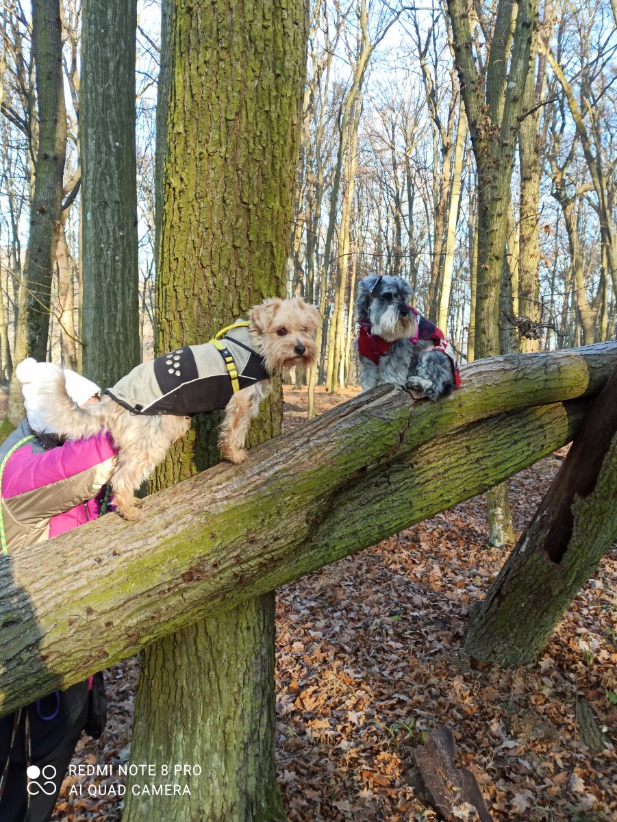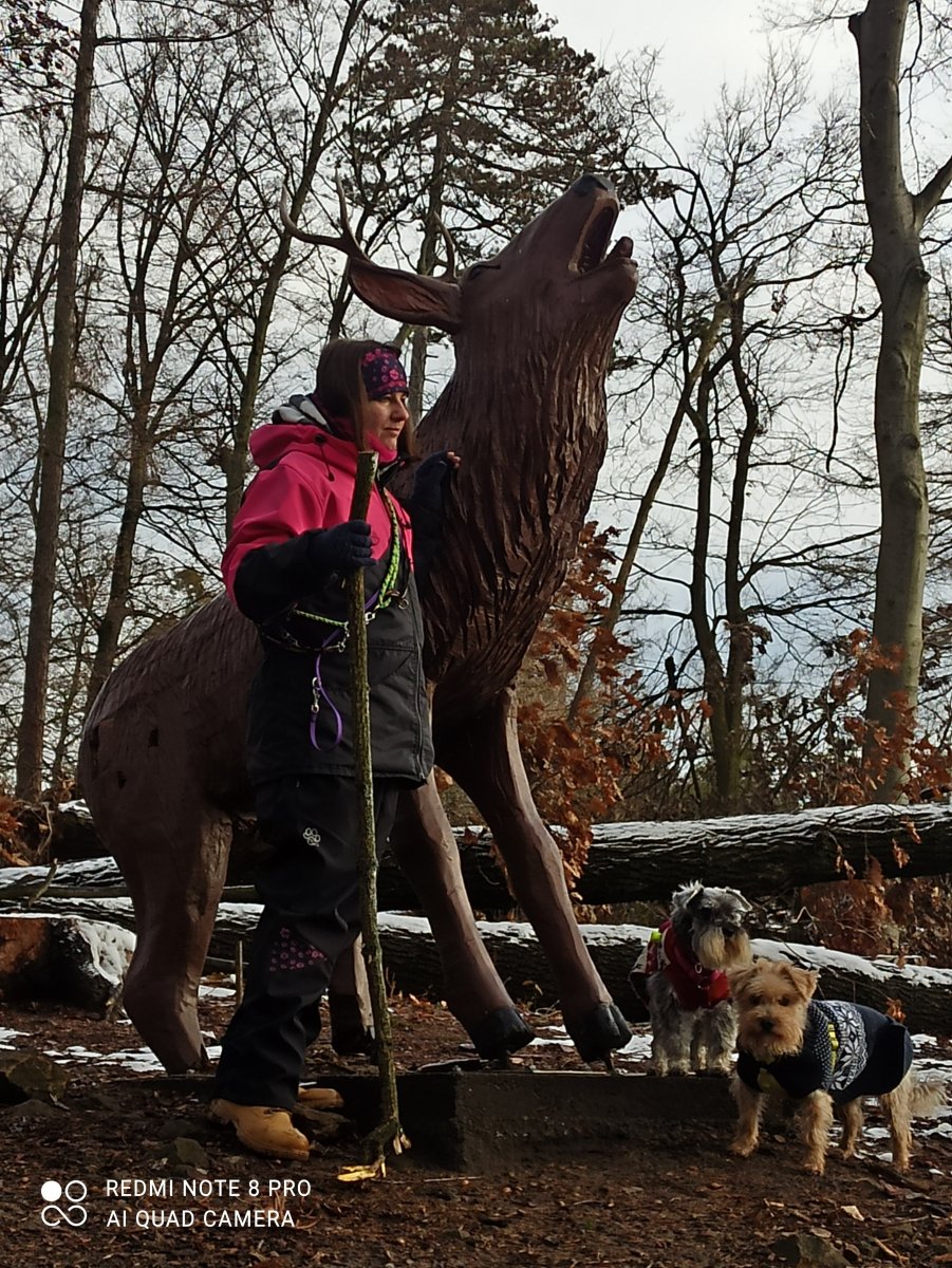 dnes ráno vycházka do Ždánského lesa,kde Žeryk ve svetru válel sudy,Dafi hopala po pařezech a hodila držku🙂