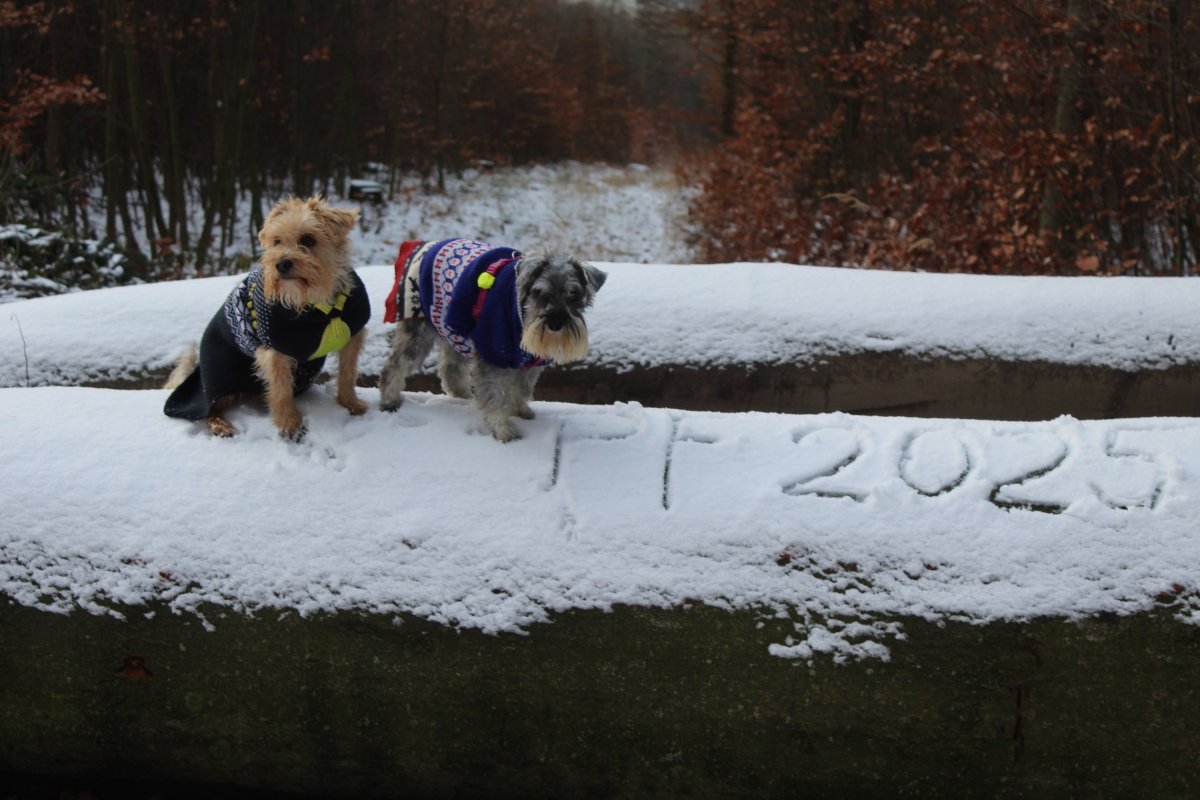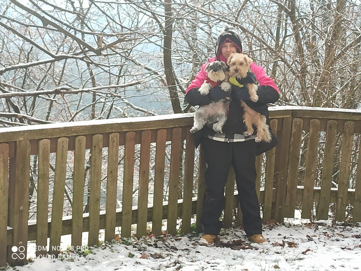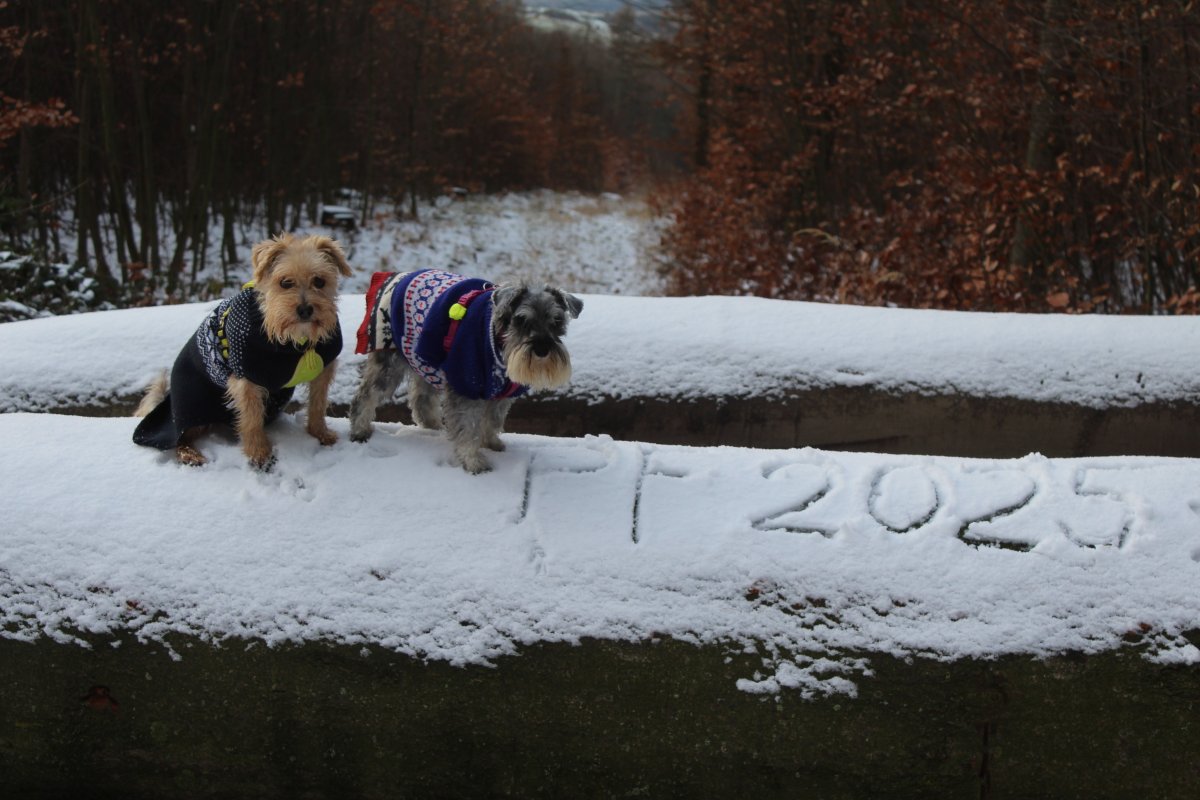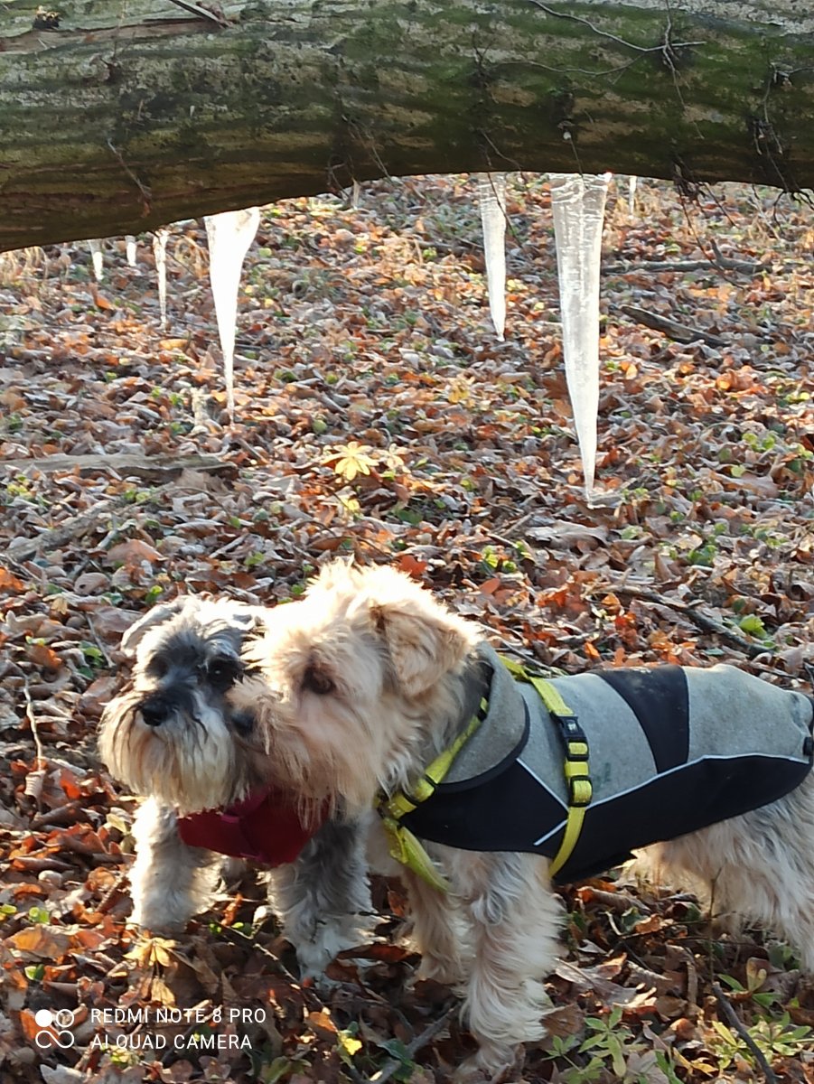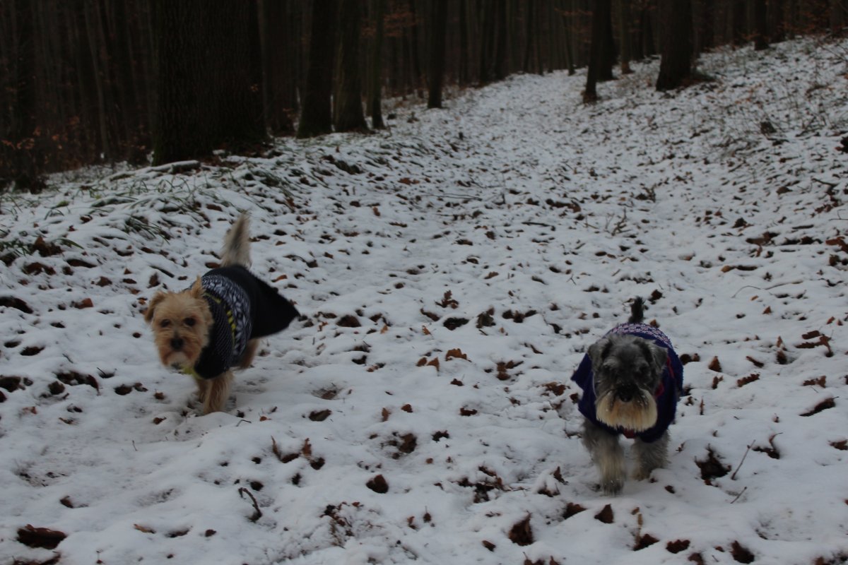dnes ráno vycházka do Ždánského lesa,kde Žeryk ve svetru válel sudy,Dafi hopala po pařezech a hodila držku🙂