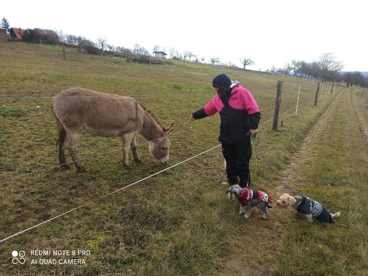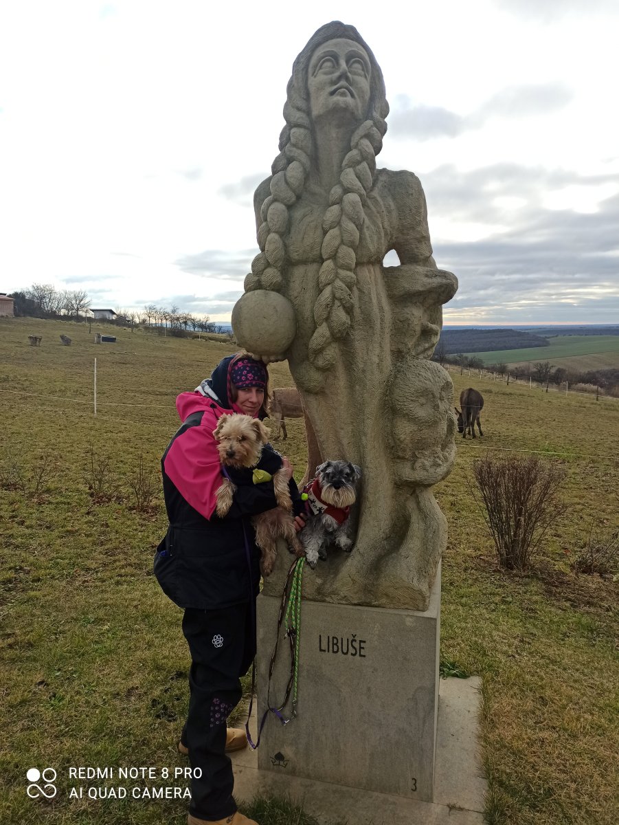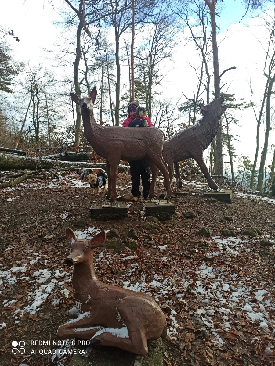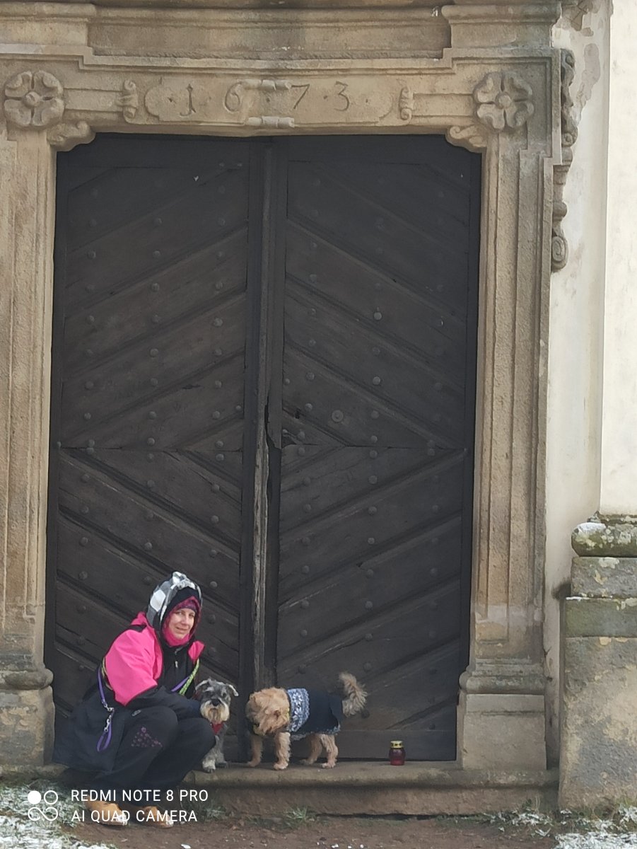 pejsani se proběhly,nadřely,všecko to prolízání,přelízání a lezení po chodech…Dafi na ty schodky lezla jak zápasník a vzprtač-vždycky zatatý packy a cpala se navrch:-(),no a ppak na Bukovanský mlýn,kde jsou oslíci,koně a alej se sochami předků-a studenej vichr!!!!brrrr