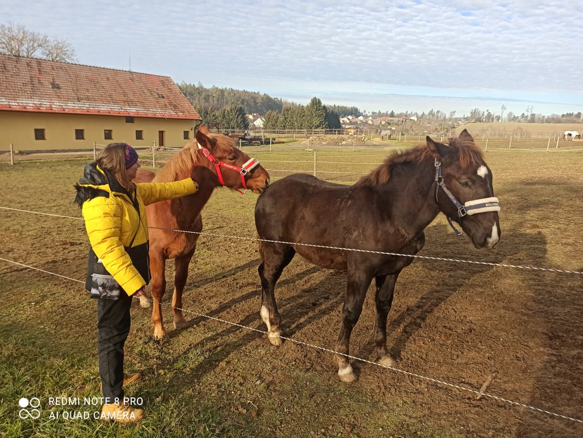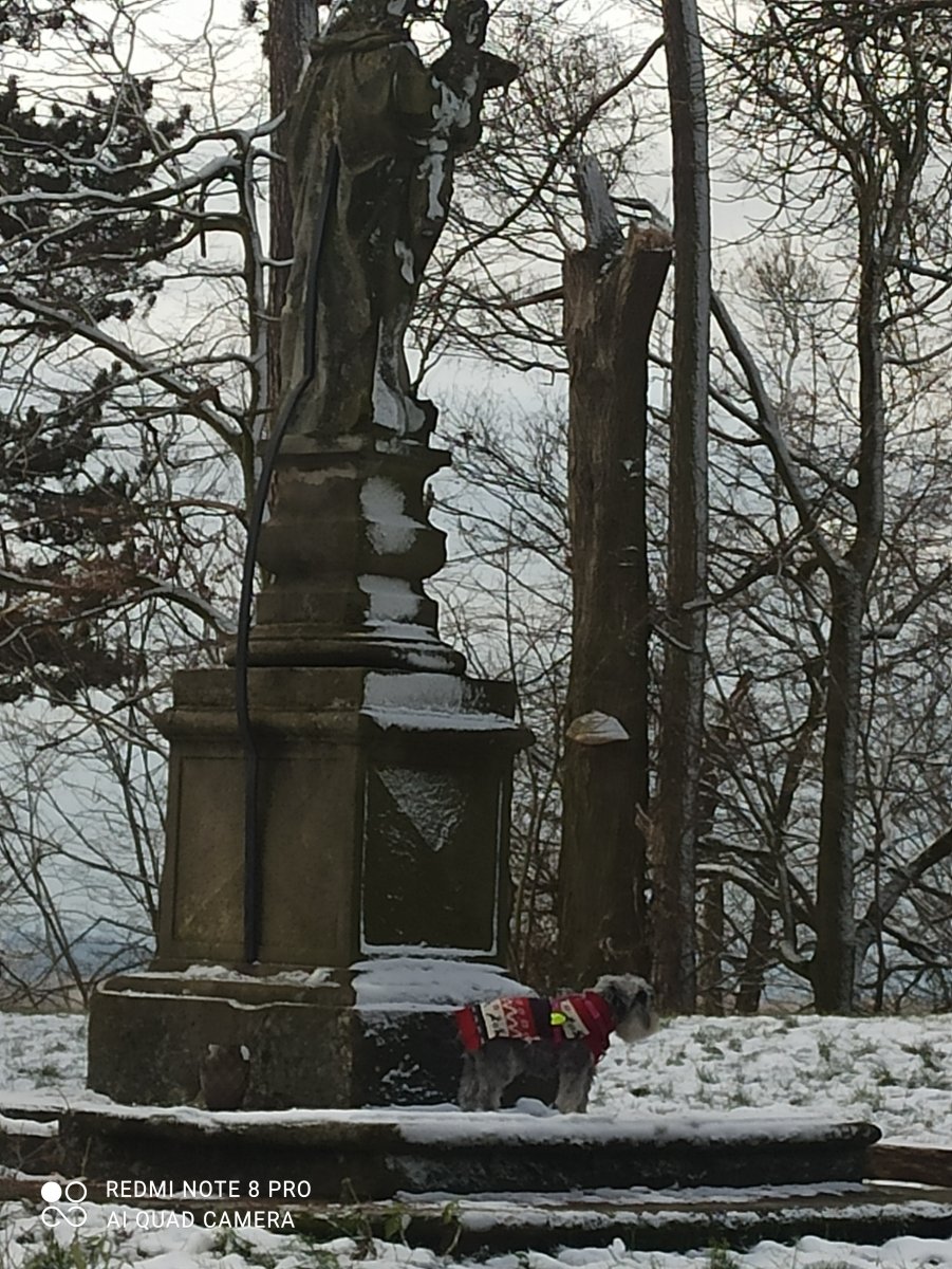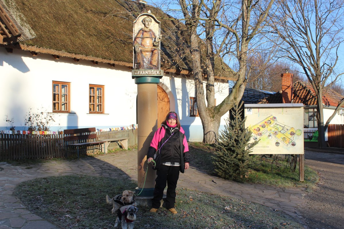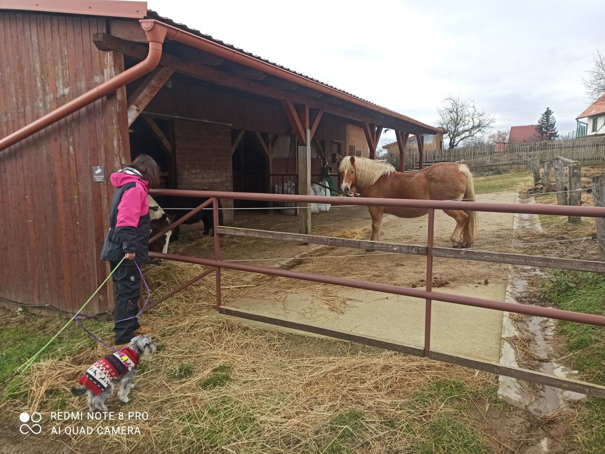 pejsani se proběhly,nadřely,všecko to prolízání,přelízání a lezení po chodech…Dafi na ty schodky lezla jak zápasník a vzprtač-vždycky zatatý packy a cpala se navrch:-(),no a ppak na Bukovanský mlýn,kde jsou oslíci,koně a alej se sochami předků-a studenej vichr!!!!brrrr