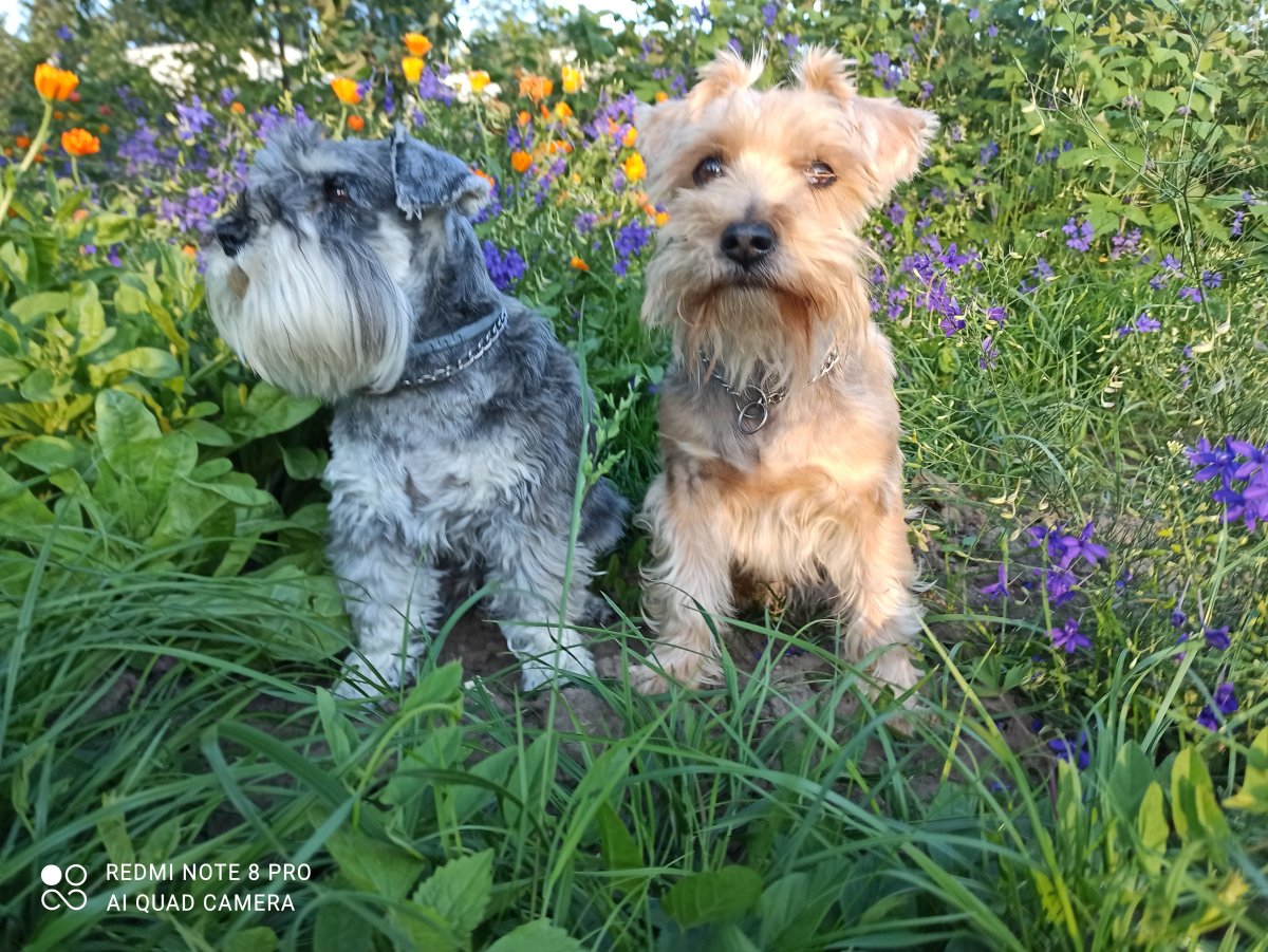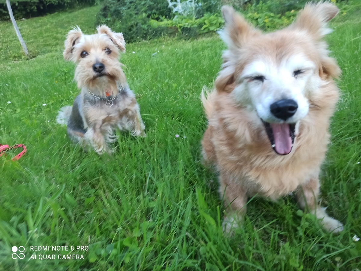 tak venčení Betty s Dafi,Žeryk s Betty po vycházce,a Žeryk s Dafi na schválně zarostlých záhoncích s kytičkama-s měsíčku máti přítele dělá masti,a to další tam tak samo vykvetlo…