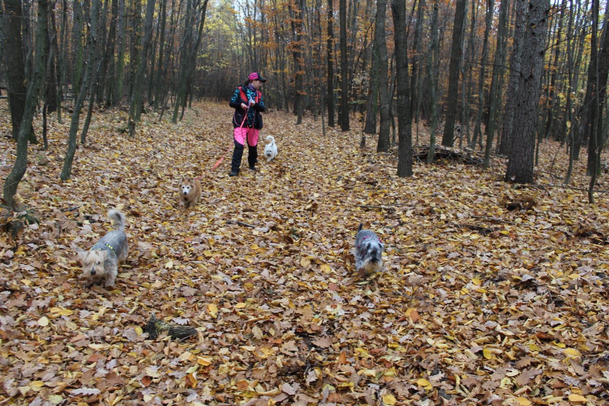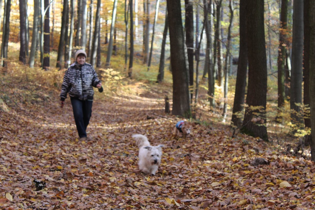 úterý byly 2 krátké vycházky.+snaha focení Bettynky v listí před domem..
