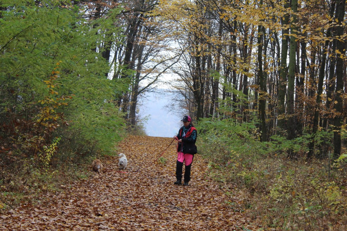 poseděla jsem na kmenu stromu,pocvičila si trochu na záda,poobjímala strom,poodměnovala Dafi na pařezu a šly jsme dom,listí padalo,šustilo….