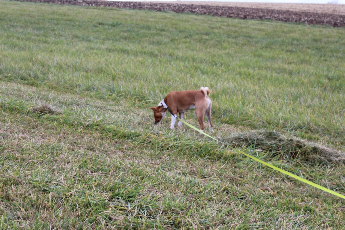 na vycházce se jí basendži několikrát zasekne a nechce jít-dělá to kdykoliv a kdekoliv-nemá to nějak logiku-jakože-kopec,rovina-pole,les,počasí…