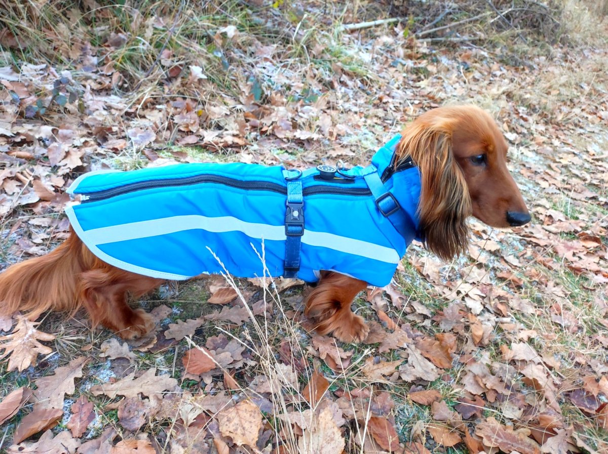 Máme další bundu, tentokrát ze Zoohitu Tiaki Warm up pro sky. Cena cca 290,-, byla akce -20%. Za mě super, lehký kabátek, podšitý stříbrnou vrstvou která odráží teplo zpět na tělíčko, krásně zakrývá i kyčle. Jo zase malá úprava šíře hrudníku a musela jsem zvětšit místo na pinďu, měl ho celýho zakrytýho. Nedělám ze psa panenku, ale jak ho na jaře bolely záda, tak mu nesmí nachladnout. A jsme venku dlouho, dneska ráno v -7 stupních skoro hodinu, odpo býváme i dvě hodiny.