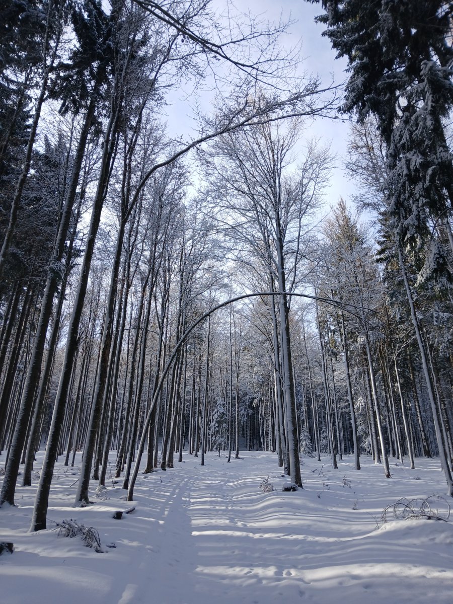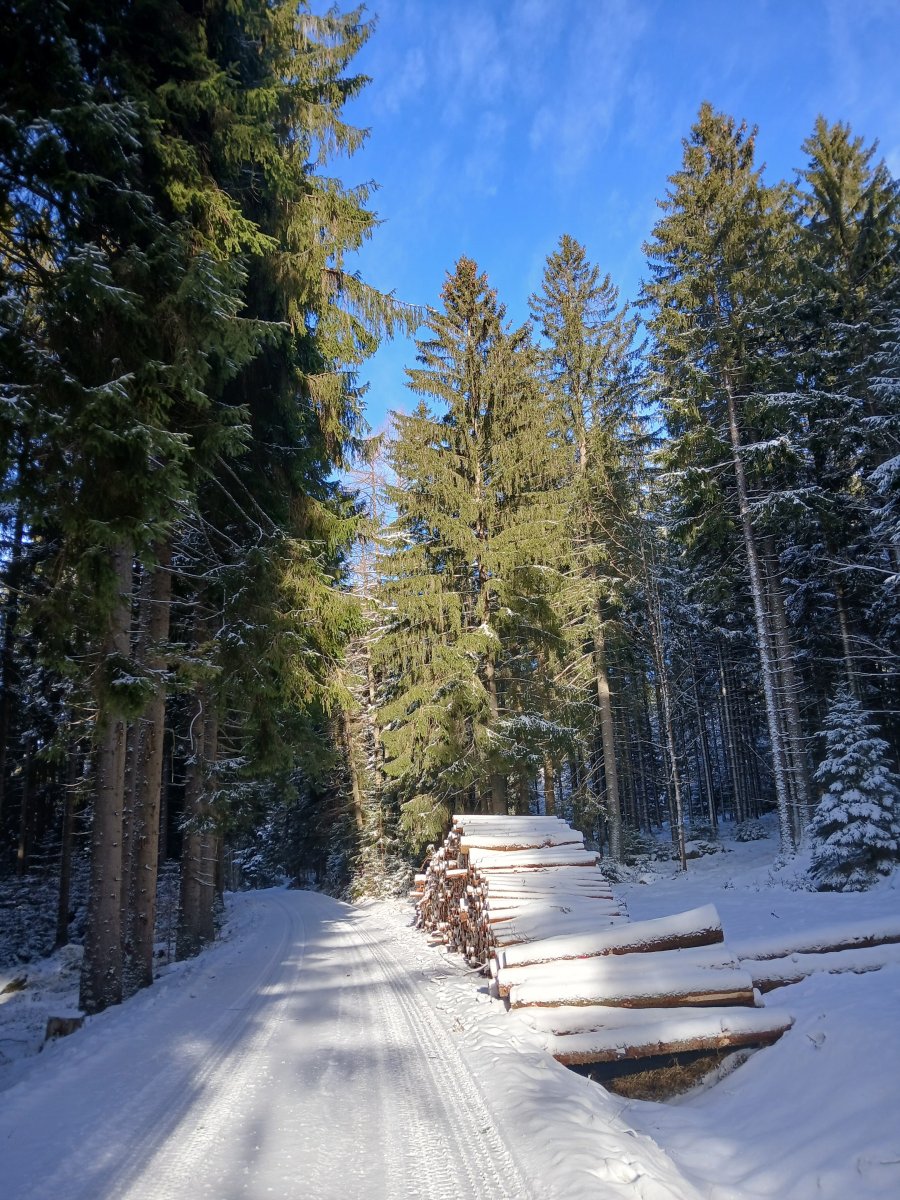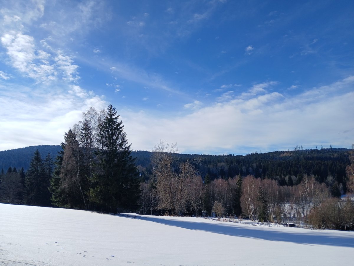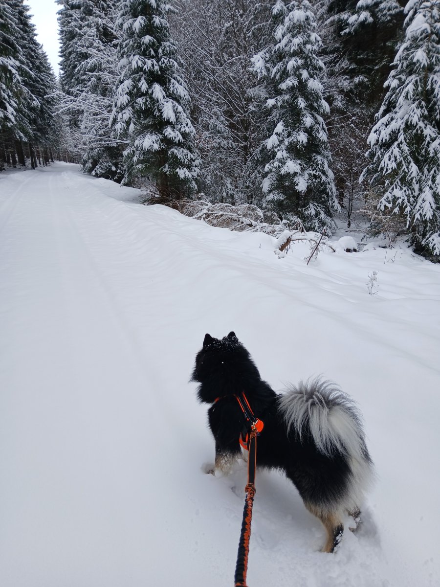 Dneska konečně vylezlo sluníčko. Jen moje maličkost krapet podcenila terén, kdy tři a půl kilometru plánované trasy vedla hlubokým sněhem, protože jsme byli první kdo tudy po několika dnech šel, a nakonec jsme si to raději asi o dva kilometry zkrátili po silnici. Tedy mladému pánovi to nevadilo. Ten má offroad. Ale mně se to brodění líbilo už míň. 😀 Ale les byl jako z pohádky.