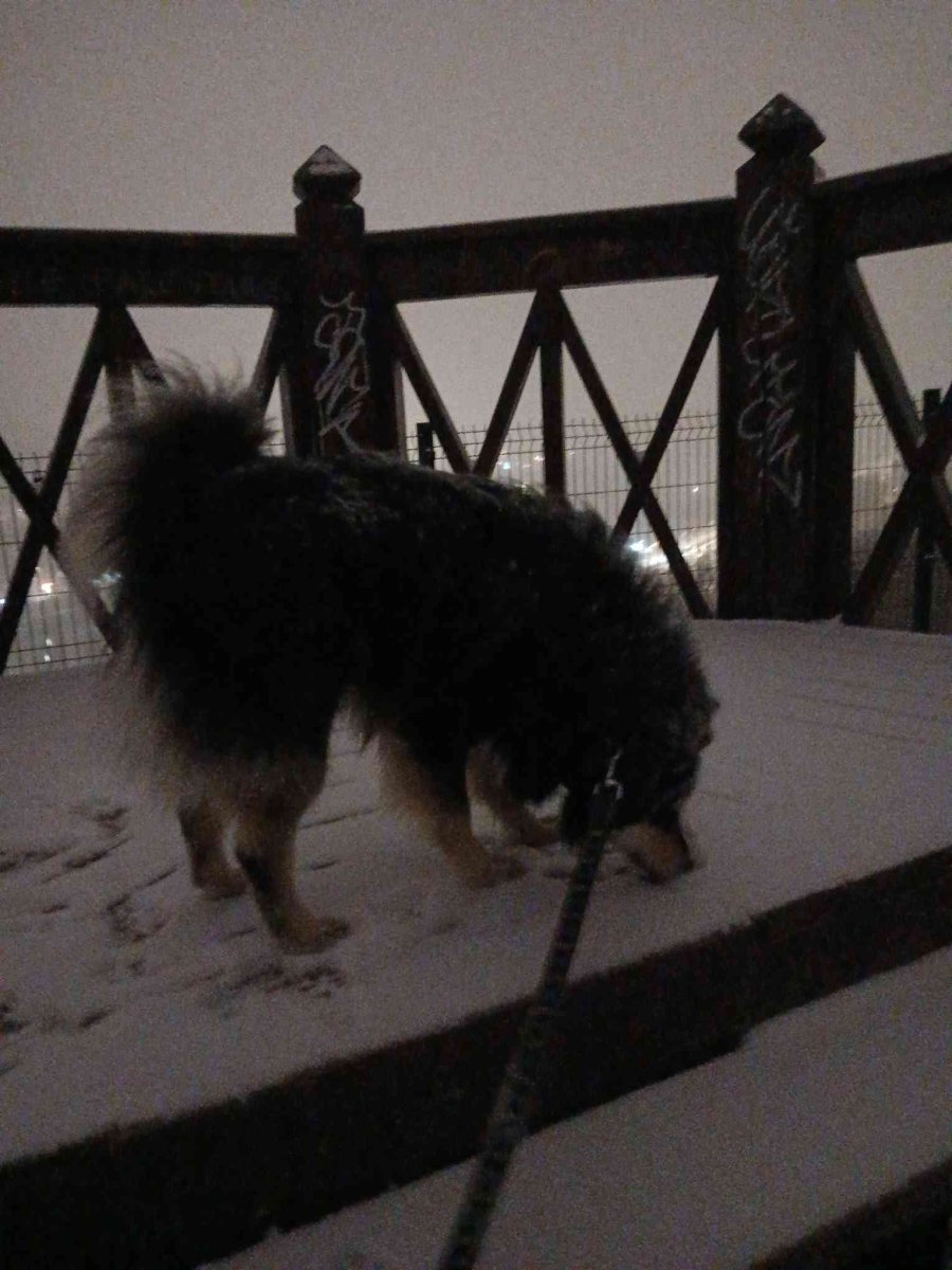 Hemží je trefný slovo. Dneska byl teda mladý pán echt intenzivní. Asi že nasněžilo, tak celý dopoledne pískal, poskakoval a vůbec na sebe upozorňoval, že jako “heeej, paničko, chci akci”. Několikrát jsem ho musel odvelet, že jako teď fakt ne, že má taky odpočívat a ne furt tancovat jak na perkách, ale do opravdy si šel lehnout až teď odpoledne. A to normálně kolem jedenácté dopoledne chrní.