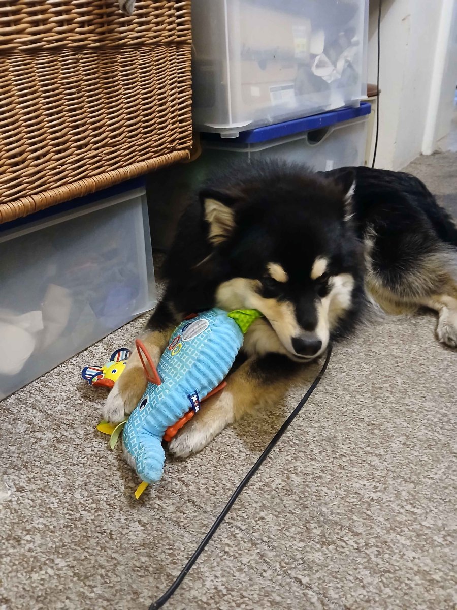 Jinak dneska jsem venčila jen ráno. Odpoledne a večer šel muž. Snažím se doladit úklid, ale se třema pidižvíkama to je jako čistitsi zuby a přikusovat tatranku, a navíc na mě asi něco leze. No a mladý pán má na činnosti názor. Takhle ztrápeně se tvářil, že se mu prej nikdo nevěnuje a tak se na just bude tvářit jako hodné, klidné štěňátko, co vůbec nerozervalo teroristce kapsu u mikiny. 😅