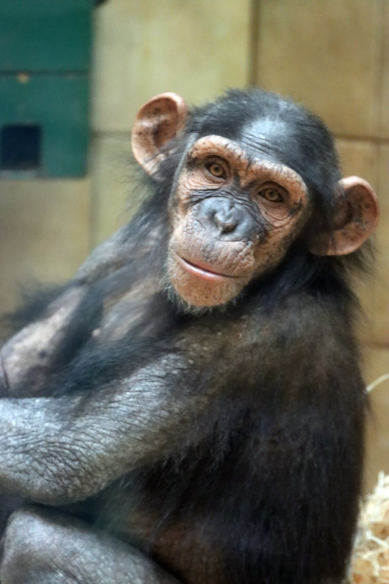 Hybridní šimpanzice Caila v Plzni stále trpí kožními problémy. Žádný typ dosud vyzkoušené léčby nepomohl. Caila se neustále drbe. Fotila Alex B.B.