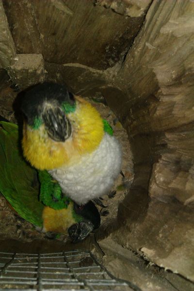 fylip03.12.2013, 09:30:54xxx.xxx.162.247Tak přikládám dnešní povedenou fotku. Čistil jsem voliéry a amazónci se již tradičně schovali do budky, tak mě napadlo, vyfotit to. :) Upřímně nevím, na čem ta budka ještě drží pohromadě, zevnitř je kompletně rozebraná, jsou tam tunely od zobáků po bocích a důlky vednu... Prostě úžasné. :)