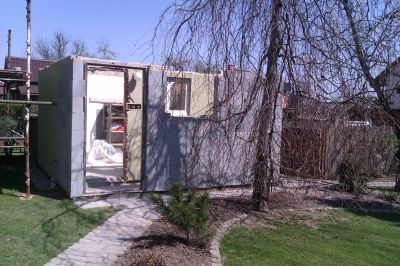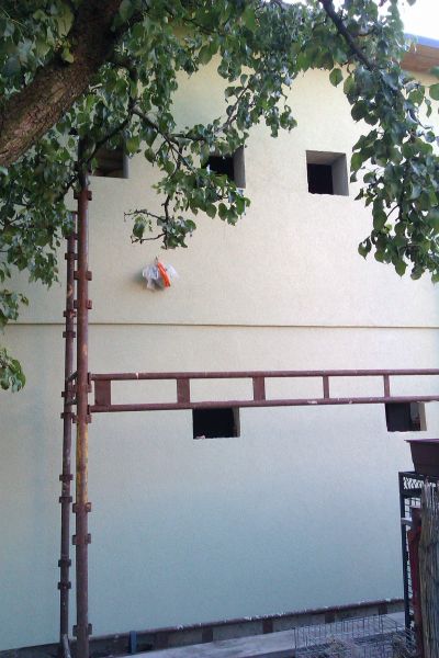 fylip01.07.2013, 23:30:14xxx.xxx.162.247Tak opět téma trošku poposunu. :) Přeskočím pár fotek a dám až dnešní, aktuální, která je focena po natažení zelené fasády - stejné, jakou máme na domu. Fotka je ale pořízena k večeru a navíc ve stínu, takže zelená možná nepůjde tak poznat. :) Zítra plánuju montáž okének.