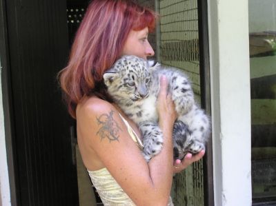 Irbis nemá v chovu žádná specifika. V době, kdy jsem na něho dostala nabídku, jsem chovala malé šelmy teprve krátkou dobu, cca 5 let, a to mi přišlo málo na to, abych se pustila do chovu irbise. Je to velice mrštná kočka a 2 skoky se dostane až na vrchol 5 m vysoké kolmé stěny. Viděla jsem to na vlastní oči a při představě, co všechno ještě dokáže se mi zatajil dech. Měla jsem několikrát možnost i bližšího kontaktu. Představte si uličku 50 cm širokou, z jedné strany zeď, z druhé obyčejné nic moc mříže a za nimi irbis v ne zrovna dobré náladě. Když zaútočil na mříže, zařval a projevil se v plné síle, tak jsem tu zeď za mnou málem zbourala, nebylo úniku, tak jsem jen stála a čekala, až se uklidní. Nakonec se nechal i pohladit, byl to už starší "pán" a letos bohužel pošel. Bylo pro mě ctí a obrovským zážitkem pochovat si jeho koťata. Velmi podobný adrenalinový zážitek mám i s levhartem obláčkovým, ale v tomto případě jsem měla kam utéct. Mít doma irbise je pro mne stále velkým lákadlem, myslím, že už bych si na jeho chov troufla, ale kdykoliv si vzpomenu na tyto horké chvilky, tak váhám i když se musím přiznat, že zážitky to pro mě byly úžasné. Chovat i malou šelmu je velká zodpovědnost a u velké je třeba zodpovědnosti přímo obří, i opomenutí nepatrného detailu by mohlo být osudné . Nicméně jsem tuto myšlenku ještě nezavrhla - kdo ví, co přinese budoucnost. Nedávno jsem dostala nabídku na tygra, ale ten mě tolik neláká. Z velkých koček je pro mě zkrátka jedničkou irbis.