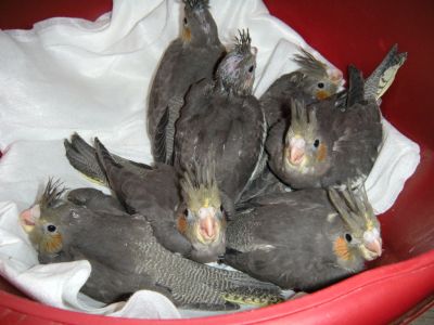 měli tam ještě zebřičky, papouška horského samici, rozely rubína, agapornise, koupila jsem si pár mníšků šedých.