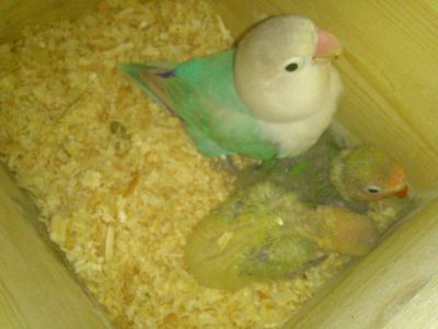 Jinak moje ochocena Fischeracka se konecne dockala vysnenych mladat a po 3 plonkovych snuskach ma dva krasne prcky a vzorne se o ne stara .
