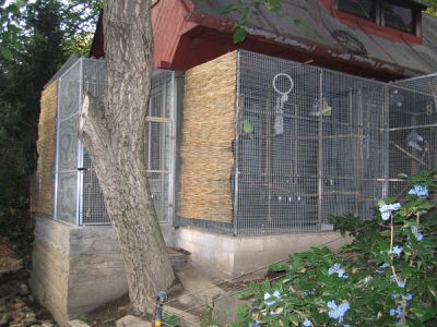 burunduky chovám ve voliéře 2x1x2 m na vyšší podezdívce, která je vyplněná až k pletivu zeminou (viz foto - je to ta úplně levá voliéra). K dispozici mají 2 budky (ale používají je hlavně jako spižírnu), dávají přednost vlastním vyhrabaným norám, kde také přezimovali i vyvedli mláďata.