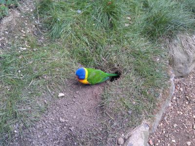 Pavel Škorňa (neregistrovaný)02.06.2012, 18:44:28xxx.xxx.242.121Právě jsem se vrátil z návštěvy Tierparku v Zittau, Nejsem žádný velký znalec papoušků ani chovatel, ale překvapila mě jedna věc - viz foto. Ve velké průchozí voliéře kolem mne náhle jeden lori prolétl a najednou vidím, že mizí v zemi. Chvilku jsem čekal u díry, vykoukla hlavička,zobák od hlíny, pak povylezl, a když jsem se pokusil rukou přiblížit, okamžitě se po mně ohnal až úplně vylezl, aby mě zahnal. Bylo pro mne, a to i jakožto laika, naprosto nečekané, vidět tohoto papouška nořit se do díry v zemi...