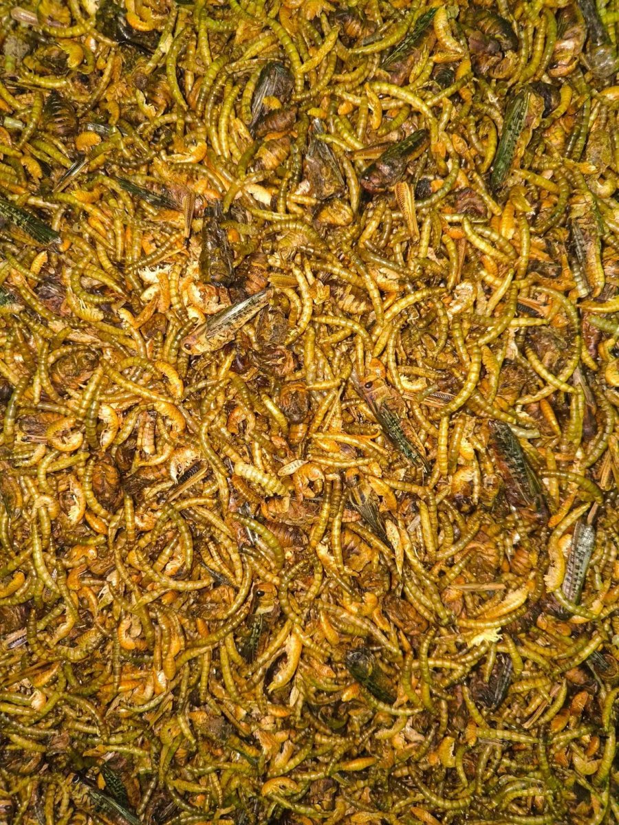 Aby vám nesly, musíte jim dát pořádně do zobáku a ony se vám odvděčí. Poctivá kombinace 4 druhů hmyzu. Kobylky, kukly bource morušového, mouční červi a gammarusy.