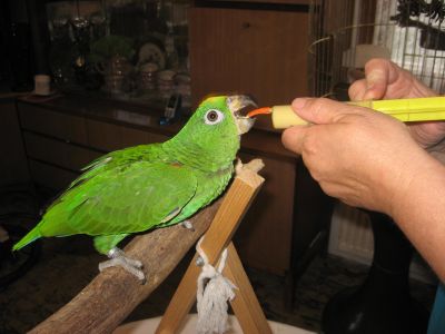 cone (neregistrovaný)02.02.2013, 21:50:51xxx.xxx.156.5No dokrmuji už také pár let, zcela odsuzuji dokrmování sondou - pokud chcete mít PET mazlíčka, je lepší krmit inj. stříkačkou nebo lžičkou, jednodušeji pak probíhá i odstav i odstav. Ale dokrmování velkých papoušků jako je kakadu, ara , amaz. či žako s nástavcem jaký máš na fotce se surinamcem je dle mého riskantní.