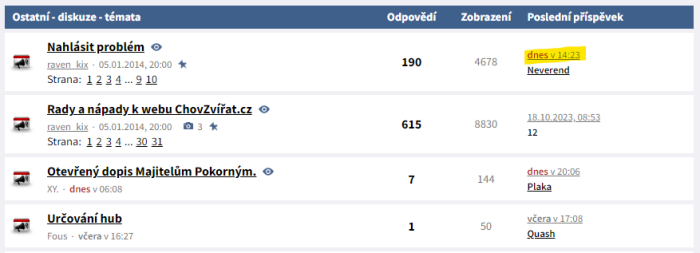 Zkusíme zjistit více informací. Klikněte u libovolného tématu (třeba u tohoto) na čas posledního příspěvku). Žlutě jsem znázornil v příloze. Co se po kliknutí zobrazí? A můžete mi sem poslat URL adresu, která se vám otevře? Zkopírujte ji přímo z řádku s adresou, děkuji.