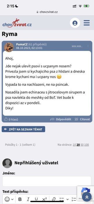 No když píšu musím zadat nad text svoje jméno. po odeslání to hodí moji ikonku. ale nahoře vpravo mám jen odhlášený profil a když kliknu nic to nedělá, nejde mi se přihlásit.