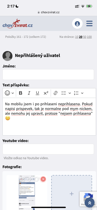 Na mobilu jsem i po prihlaseni neprihlasena. Pokud napisi prispevek, tak je normalne pod mym nickem, ale nemohu jej upravit, protoze “nejsem prihlasena” 🙂