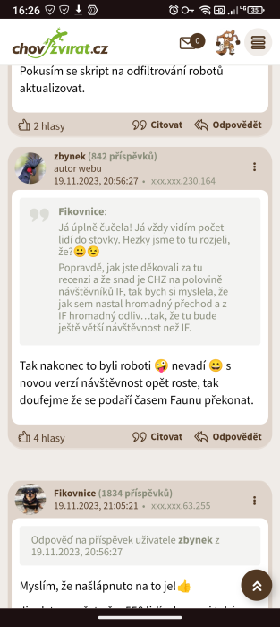 Tak nakonec to byli roboti 🤪 nevadí 😀 s novou verzí návštěvnost opět roste, tak doufejme že se podaří časem Faunu překonat.