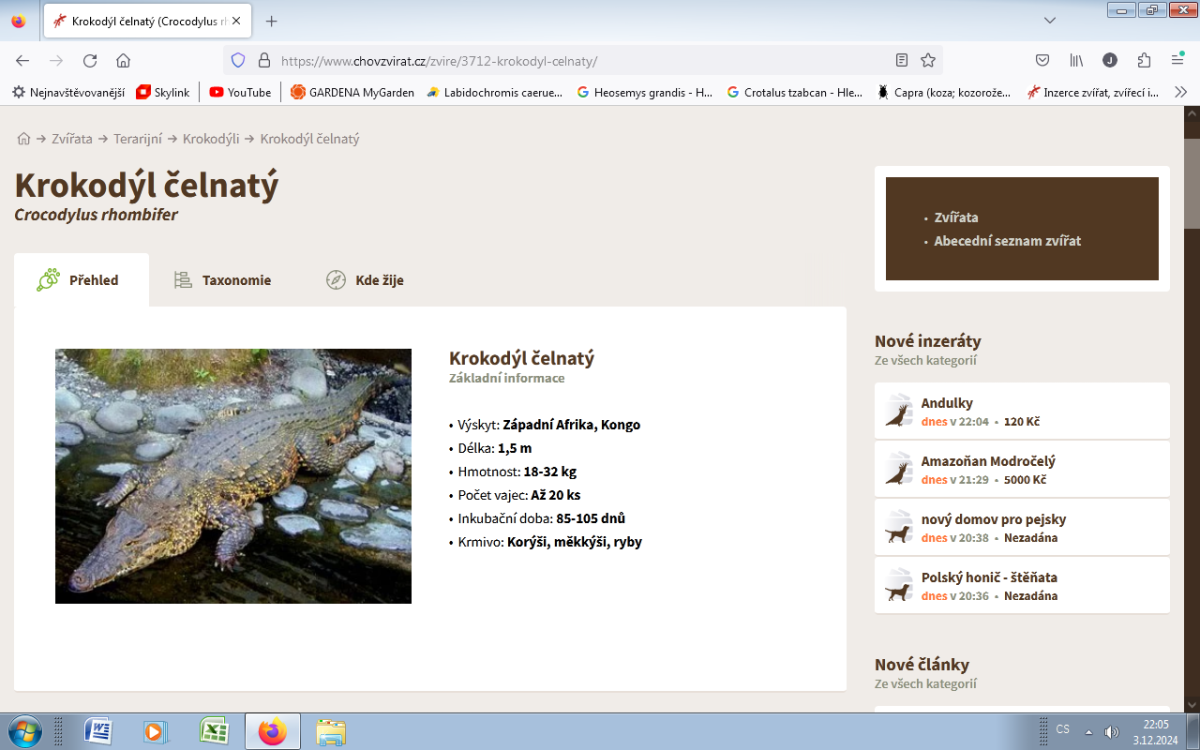 Otevřel jsem dnes web a dole na hlavní stránce bylo pár zvířat a mezi němi i tady krokodýl. Prvně jsem myslel, že půjde o chybku v českém názvu, ale po přečtení textu mi došlo, že špatně je spíš fotka a vědecký název. Šel by ten šotek opravit? Případně by neškodila ani aktualizace odstavce ve kterých našich zahradách je chován, Plzeň už je nemá, naopak tam myslím není zmíněný Dvůr, krokodýlí zoo Praha.