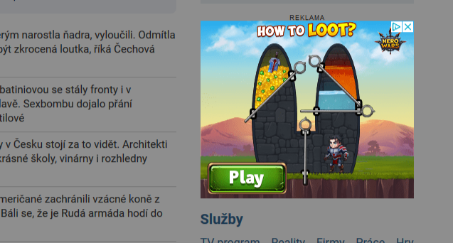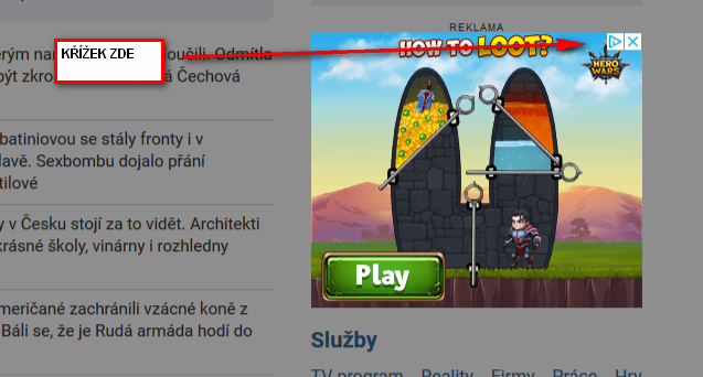 Když nad tou reklamou podržíte myš (nevím, jak to funguje na mobilu…), tak by se měl v pravém horním rohu reklamy objevit maličký nenápadný křížek, jakoby na zavření okna. Když na tu reklamu kliknete kamkoli, odvelí vás to na jejich webové stránky. Musíte kliknout na ten křížeček - vyhrabala jsem na netu fotku, jak to vypadá 🙂 Pak se vás ta reklama zeptá, proč ji nechcete vídat.