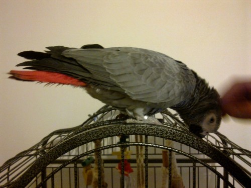 Co sa tyka hryzenia, zahana sa na mna uz minimalne. Cosi viac mi doveruje. Vobec mu nepcham ruky do klietky a ked, tak cele (nie len prsty), reaguje na to lepsie ako ked mu zvonka pcham prsty. Dnes mi dokonca 3x sklonil hlavicku, raz sa nechal hladit aj vzadu na krku, skoro som odpadla 😄