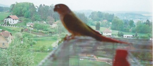 Našla jsem v mých straších fotkách pyruru jak přehlíží krajinu. Každý kdo chce pyruru se ptá pouze po ručně dokrmené. Ale u pyrur není potřeba ručně dokrmovat a ochočí se i bez dokrmení.