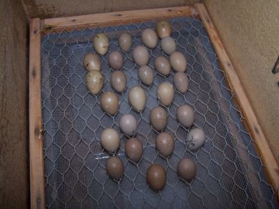 autor webu 03.03.2008, 15:31:12xxx.xxx.111.1Vajíčka křepelek čínských. Pod pletivo jsem přidělal ještě navíc hustší síťku protože kuřátka křepelek čínských by lehce propadla a zřejmě by se utopila v miskách s vodou.