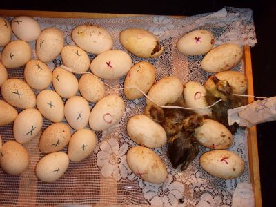 Teď budu čekat na krůťata (ty menší vajíčka na obrázku) která se začnou líhnout 13.3.