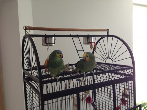 Náš sameček i samička v pohodě ,sameček byl v pohodě , mluvil byl živej veselej a přítulnej . Po příchodu samičky se malinko změnil . Ze začátku byl trochu agresivní ale už se srovnal , samičku máme od Mvdr.Weidlove z Kralup , super odchovaná bez problémů . Když jsme jí přivezl 3 dny jsem je měl od sebe v extra klecích , po třech dnech den D , vše proběhlo bez problémů a perfektně . Měli jsme asi štěstí ale pasujou k sobě . Létají , drbou se , krmí se . Zkrátka si perfektně padnou . Sice jsou trochu hluční ale to je ok , máme velký dům a sousedi daleko . Jsem jednoznačně zastáncem páru ač jsem byl vždy proti .