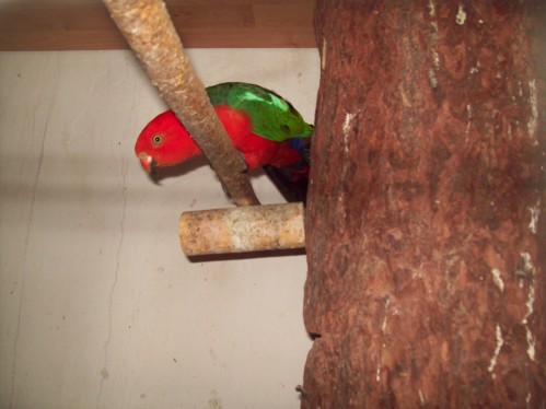 Eklekti se ještě několikrát pářily, nebo se o to spíš tak nějak pokoušeli a samice už nocuje jenom v boudě, stejně tak tam je dost často i přes den, tak uvidíme, jestli se něco povede. Samec je oproti předchozím dnům extrémně hlučný.