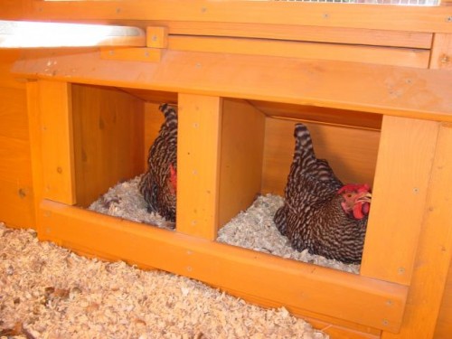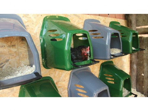 Snášková hnízda by měla být v počtu nejméně jedno hnízdo na tři nosnice (např. pro 15 nosnic je potřeba minimálně 5 hnízd ). Hnízda by měla být uvnitř kurníku, nejlépe na jeho podlaze u stěny. Ale mohou být i nad sebou ve dvou poschodích. Pak je nutné kolem hnízd ve 2. poschodí udělat ochoz a k němu z podlahy žebříček. Důležité je vchod do každého hnízda zastínit závěsem např. z jutového pytle, aby v hnízdě bylo pološero. To je důležité zejména u leghornek bílých. (Zastíněná hnízda jsou prevencí před kanibalismem). Hnízda nejlépe vystýlejte měkkou neřezanou ječnou nebo ovesnou slámou. Hnízdo musí být pro nosnici pohodlné, aby se v něm mohla pohodlně otočit. Tedy velikost podlahové plochy hnízda záleží na velikosti nosnic (podle plemene).