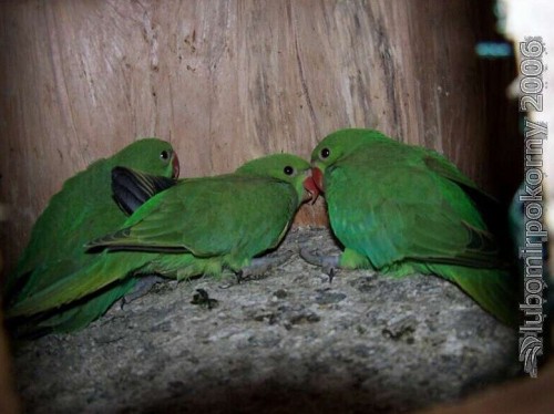Souhlas. Sice u svého páru jsem měl max. 4 mladé, ale dobrý pár to zvládne. Spotřeba krmiva bude vysoká. Na fotce jsou mladí alexandři těsně před vylétnutím, fotka už je z roku 2006: