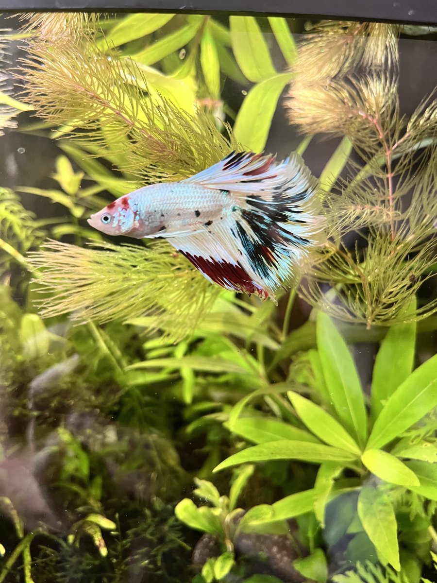 Nooo…tak jsem byla v sobotu na burze pro paví očka do jiného akvárka. A nějak se stalo, že jsem si odvezla tohoto krasavce…vnitřně jsem se tomu bránila, ale stejně jsem ho nakonec koupila. Vypadá mnohem lépe než ten předchozí, myslím co se robustnosti a stavby těla týká. Sušené jídlo moc nechce, koupila jsem mu patentky a je spokojený. Krevety zatím bez úhony.