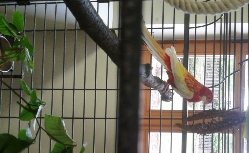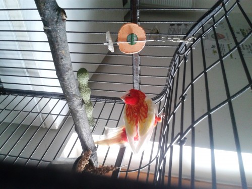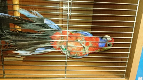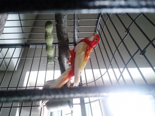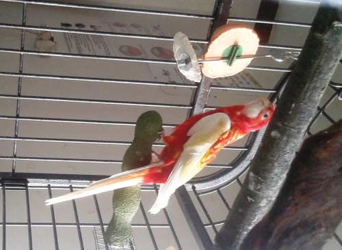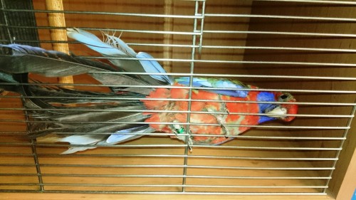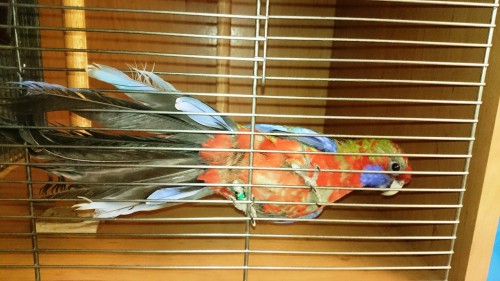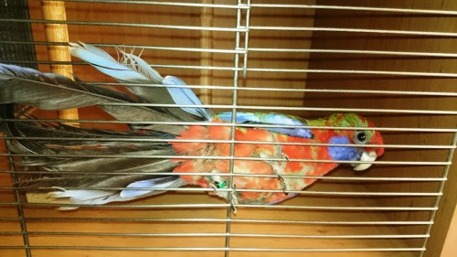 hlavne je to chudak rozela v male kleci, kam rozely vubec nepatri. Je to poznat i podle ocasnich per, ktere ma ponicene z maleho prostoru. Ale abych Vam odpovedel. Je to mlada rozela penant. Phlavi nevim